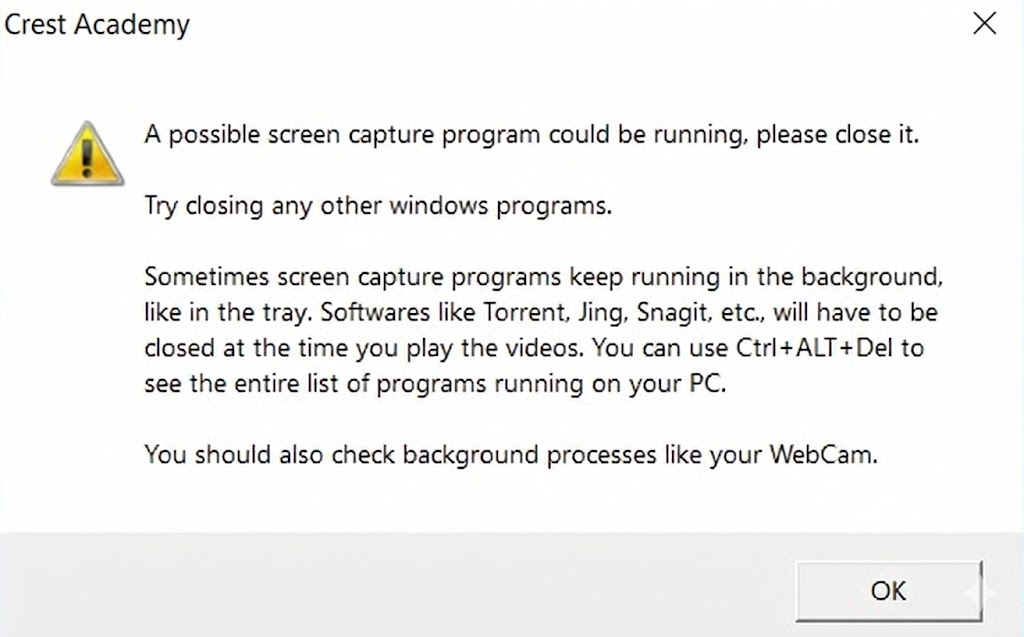 * بعض البرامج في الخلفية تحاول تصوير الشاشة * * هناك شاشه خارجيه موصله او بروجيكتور *